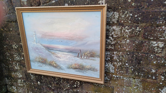 20% OFF AT CHECKOUTRegular price £78.00 GBPRegular priceUnit price / perSale price £78.00 GBP20% OFF AT CHECKOUTClassic 80s Seascape Vista Lighthouse Oil Painting on Canvas in Gold Frame.