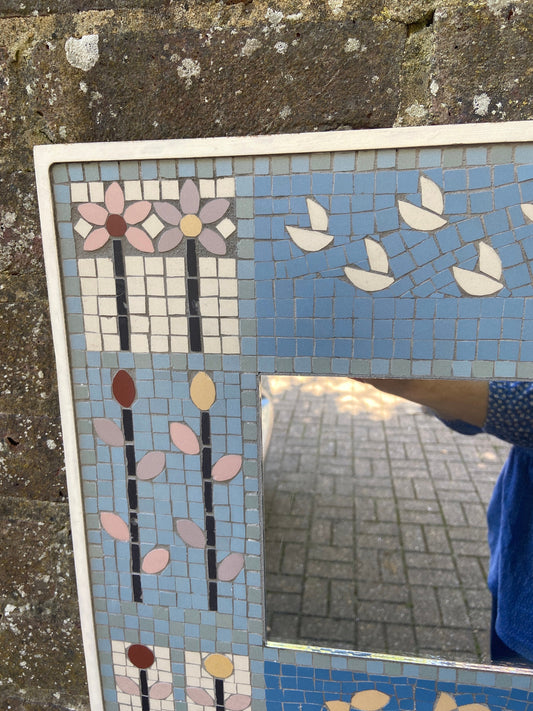 20% OFF AT CHECKOUTRegular price £145.00 GBPRegular priceUnit price / perSale price £145.00 GBPSold outWonderful vintage mosaic mirror - handmade in Britain - beautiful blues, animals and flowers - art deco like