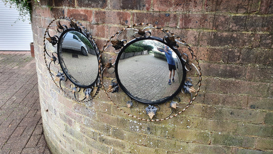 20% OFF AT CHECKOUTRegular price £48.00 GBPRegular priceUnit price / perSale price £48.00 GBP20% OFF AT CHECKOUT2 Retro Pair Metal Convex Black and Gold Mirrors 1960’s Leaf Shape