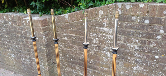 Set of 4 Vintage 80s Wooden Decorative Standard Lamps.