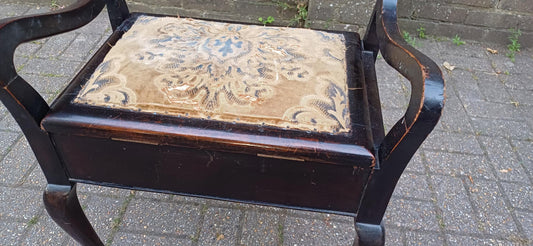 20% OFF AT CHECKOUTRegular price £195.00 GBPRegular priceUnit price / per20% OFF AT CHECKOUTAntique Mahogany Stool with Tapestry Seat, Ornate Carved Details & Fretwork Accents – Elegant Vintage Vanity Piece Age Worn