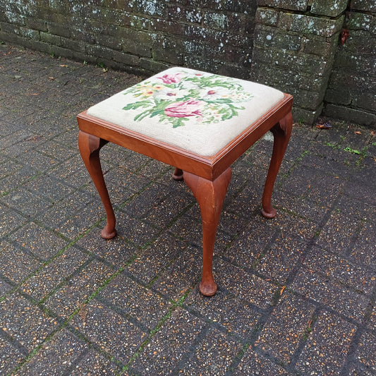 20% OFF AT CHECKOUTRegular price £345.00 GBPRegular priceUnit price / per20% OFF AT CHECKOUTVintage Cabriole Leg Stool with Original Still Life Tapestry, 1920s-1940s, Elegant and Timeless Design