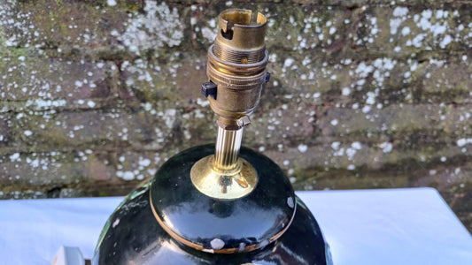 20% OFF AT CHECKOUTRegular price £68.00 GBPRegular priceUnit price / perSale price £68.00 GBP20% OFF AT CHECKOUT1970s mock Victorian oil lamp in white ceramic, brass shade holder and vintage floral motif - working condition