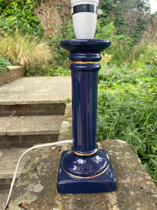 20% OFF AT CHECKOUTRegular price £140.00 GBPRegular priceUnit price / perSale price £140.00 GBP20% OFF AT CHECKOUTClassic 1990s vintage navy blue table lamp - blue and gold ceramic, working, candlestick holder style, stick lamp