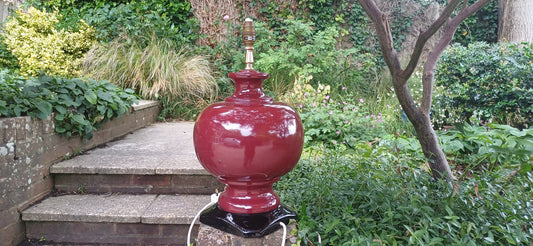20% OFF AT CHECKOUTRegular price £86.00 GBPRegular priceUnit price / perSale price £86.00 GBP20% OFF AT CHECKOUT1980s maroon burgundy ceramic lamp with funky floral shade - Goodson Lighting - working