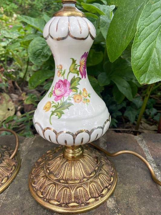 1920s Floral China Urn Style Lamp with floral transfers, excellent condition, working order, large size