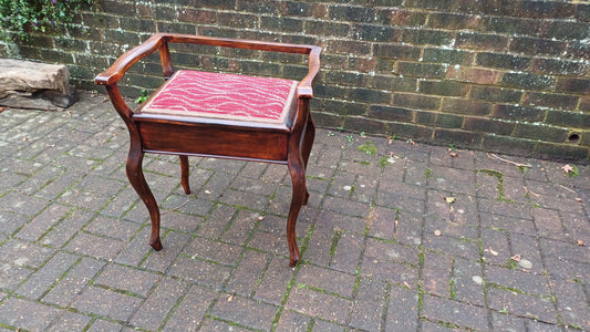 20% OFF AT CHECKOUTRegular price £350.00 GBPRegular priceUnit price / perSale price £350.00 GBP20% OFF AT CHECKOUTElegant and Top Quality Vintage Mahogany Piano Stool Upholstered with Sheet Compartment.