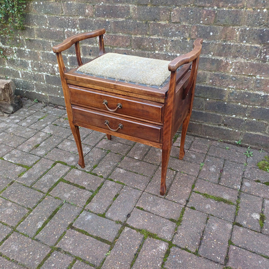 20% OFF AT CHECKOUTRegular price £345.00 GBPRegular priceUnit price / perSale price £345.00 GBP20% OFF AT CHECKOUTAntique Late Victorian Upholstered Mahogany Piano Stool with Drop Down Music Drawers and Ornate Brass Handles