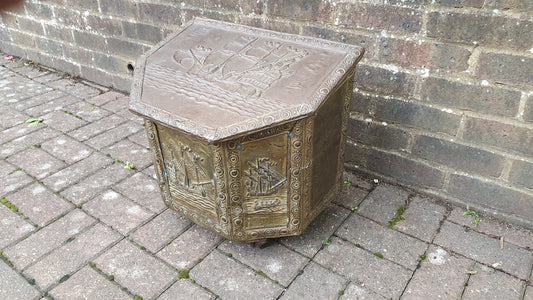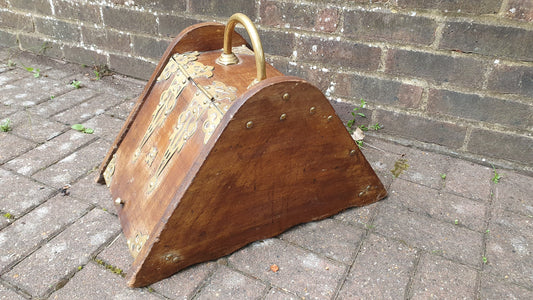 20% OFF AT CHECKOUTRegular price £75.00 GBPRegular priceUnit price / perSale price £75.00 GBP20% OFF AT CHECKOUTVintage Decorative Brass and Wood Coal Kindling Coal Box Fireplace Storage.