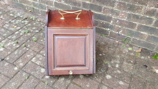 Beautiful Hand Stripped Restored Vintage Edwardian Coal Scuttle Coal Box Wood and Brass Inner Lining. Walnut or Mahogany.