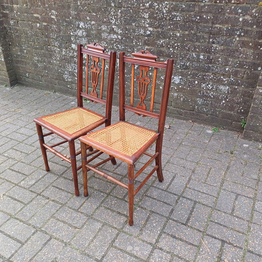 20% OFF AT CHECKOUTRegular price £58.00 GBPRegular priceUnit price / perSale price £58.00 GBP20% OFF AT CHECKOUTPair of Antique Vintage Edwardian Cane Seat Chairs – Mahogany Dining or Accent Chairs with Carved Lyre Back