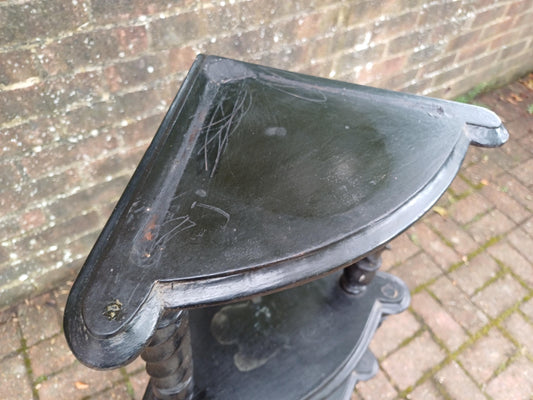 20% OFF AT CHECKOUTRegular price £198.00 GBPRegular priceUnit price / perSale price £198.00 GBP20% OFF AT CHECKOUTAntique Black Lacquered Effect Corner Étagère with Barley Twist Legs 4 Tier Victorian Gothic Display Shelf Unit Ornate Carved Top Wot Not