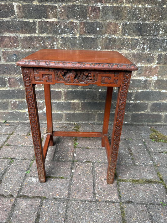 20% OFF AT CHECKOUTRegular price £195.00 GBPRegular priceUnit price / perSale price £195.00 GBP20% OFF AT CHECKOUTSmall Vintage Chinese Carved Hardwood Side Table Plant Stand – Oriental Decorative Furniture with Floral & Geometric Detailing, plant table