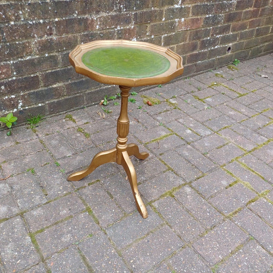 20% OFF AT CHECKOUTRegular price £195.00 GBPRegular priceUnit price / perSale price £195.00 GBP20% OFF AT CHECKOUTVintage upcycled wine table, side or lamp table - gorgeous 1980s table with a matt gold painted finish & the original green leatherette top