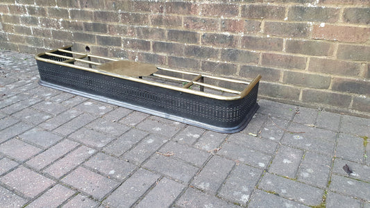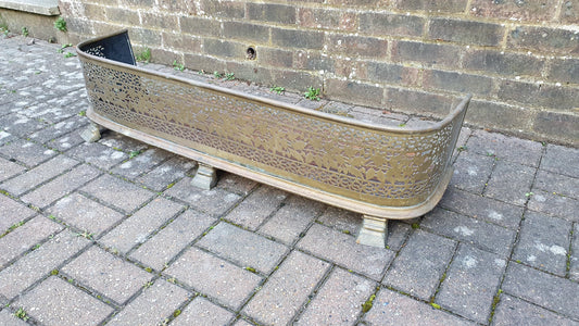 20% OFF AT CHECKOUTRegular price £95.00 GBPRegular priceUnit price / perSale price £95.00 GBP20% OFF AT CHECKOUTLarge Vintage Late Victorian Brass Fender Fire Guard Curb Pierced Decoration.