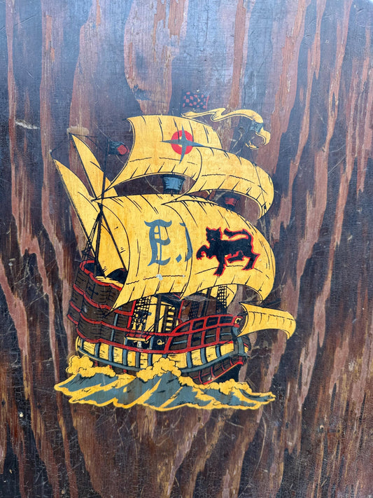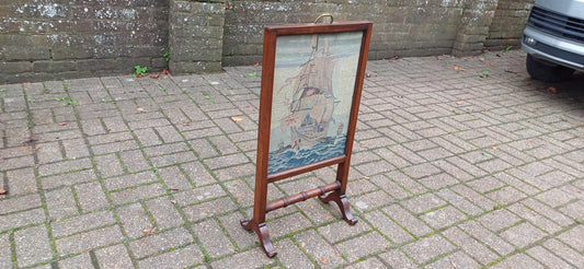 20% OFF AT CHECKOUTRegular price £145.00 GBPRegular priceUnit price / perSale price £145.00 GBP20% OFF AT CHECKOUTMid century wooden frame, painted galleon fire screen - small wooden firescreen, fire guard 1900s