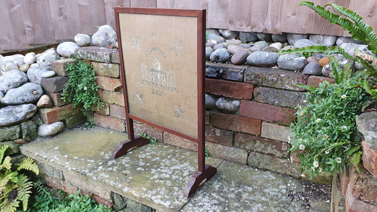 20% OFF AT CHECKOUTRegular price £195.00 GBPRegular priceUnit price / perSale price £195.00 GBP20% OFF AT CHECKOUTRare and Antiquated Vintage University Oak Fire Screen Tapestry Oxbridge Cambridge Emmanuel