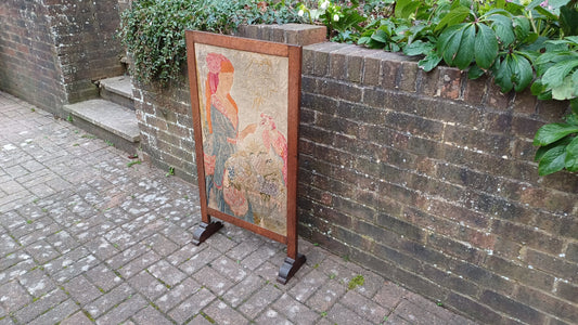 20% OFF AT CHECKOUTRegular price £125.00 GBPRegular priceUnit price / perSale price £125.00 GBP20% OFF AT CHECKOUTLarge Vintage Solid Oak Arts and Crafts Fire Screen Tapestry Lady Feeding Parrot. One Metre Tall