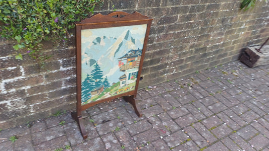 20% OFF AT CHECKOUTRegular price £145.00 GBPRegular priceUnit price / perSale price £145.00 GBP20% OFF AT CHECKOUTVintage Oak Fire Screen 1920s Swiss Alps Tapestry Fire Guard Fireplace.