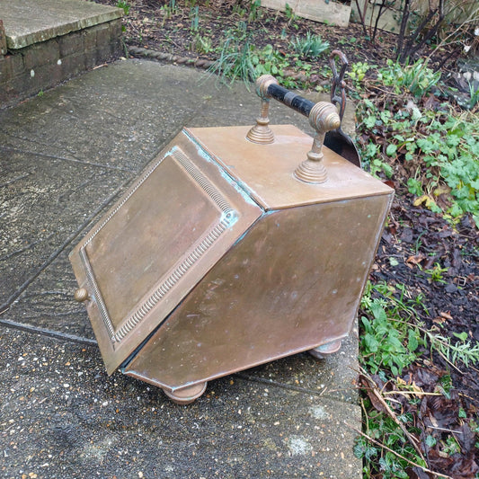 Vintage Late Victorisn Brass Coal Box Scuttle with Intact Liner and Shovel
