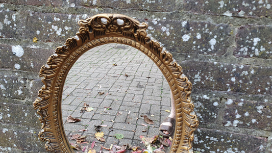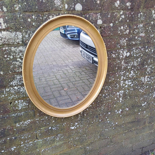 20% OFF AT CHECKOUTRegular price £105.00 GBPRegular priceUnit price / perSale price £105.00 GBP20% OFF AT CHECKOUTPretty Vintage Gold Oval Mirror, small gold mirror, shabby chic finish.