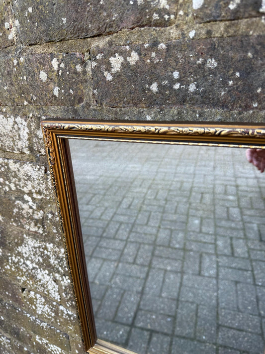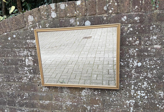 20% OFF AT CHECKOUTRegular price £115.00 GBPRegular priceUnit price / perSale price £115.00 GBP20% OFF AT CHECKOUTGood Sized Vintage 70s Retro Gilt Gold Wall Mirror – currently horizontal/landscape (60cm x 46cm)
