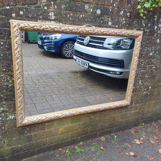 20% OFF AT CHECKOUTRegular price £105.00 GBPRegular priceUnit price / perSale price £105.00 GBP20% OFF AT CHECKOUTQuality vintage gold painted wooden mirror, large rectangular retro mirror, heavy quality wooden mirror with gold antique finish