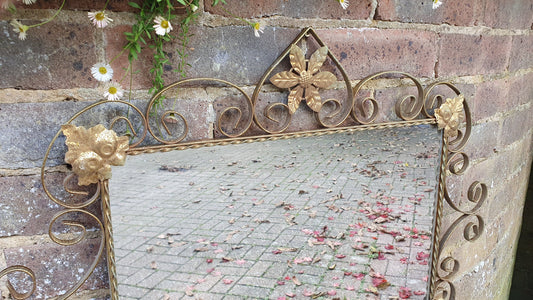 Vintage Decorative Gold Metal 70s Mirror Flower Motif.