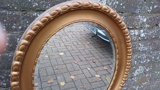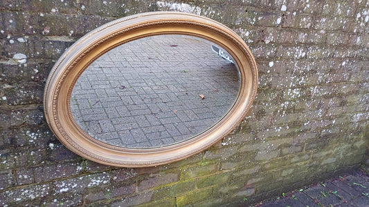 20% OFF AT CHECKOUTRegular price £145.00 GBPRegular priceUnit price / perSale price £145.00 GBP20% OFF AT CHECKOUTSuperb Vintage Oval Chunky Gold Gilt Wall Mirror.