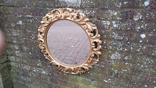 20% OFF AT CHECKOUTRegular price £65.00 GBPRegular priceUnit price / perSale price £65.00 GBP20% OFF AT CHECKOUTLarge Classic 1970s Ornate Gold Gilt Round Mirror.