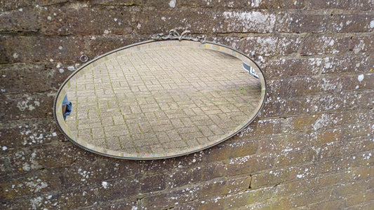 20% OFF AT CHECKOUTRegular price £120.00 GBPRegular priceUnit price / perSale price £120.00 GBP20% OFF AT CHECKOUTSuperb Pretty Vintage Metal Brass Oval 1920s Wall Mirror Ribbon Decoration.