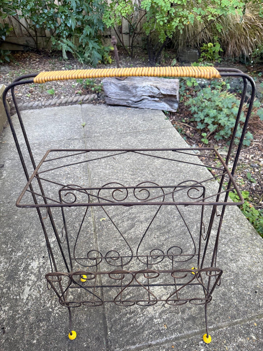 20% OFF AT CHECKOUTRegular price £175.00 GBPRegular priceUnit price / perSale price £175.00 GBP20% OFF AT CHECKOUTVintage 1950s Wire Magazine Rack – Mid-Century Scrollwork Storage Stand with original Yellow Feet & Handle, vintage storage rack - towels?