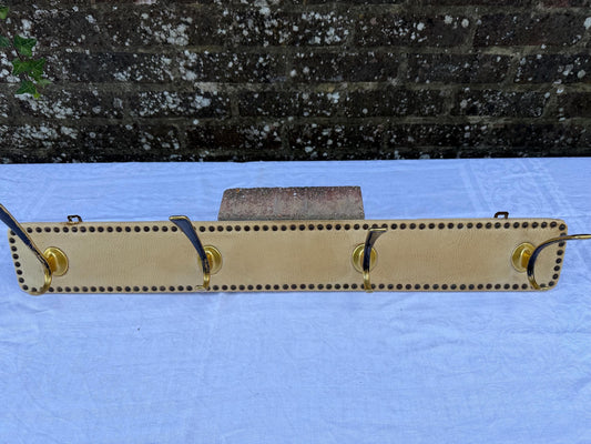 20% OFF AT CHECKOUTRegular price £125.00 GBPRegular priceUnit price / perSale price £125.00 GBP20% OFF AT CHECKOUTVintage Mid-Century Wall-Mounted Coat Hooks – Brass and Vinyl Panel with Stud Detailing – Retro Hallway Storage, retro hooks, refurb project
