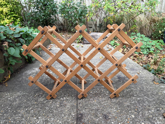 Vintage Folding Wooden Wine Rack, Retro 1970s–1980s, Expandable Mid Century Style Wine Storage