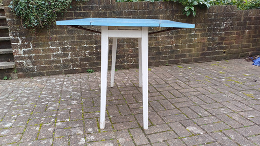 20% OFF AT CHECKOUTRegular price £275.00 GBPRegular priceUnit price / perSale price £275.00 GBP20% OFF AT CHECKOUTVintage Retro Painted White and Blue Formica Drop Leaf Table. Free Hand Delivery.
