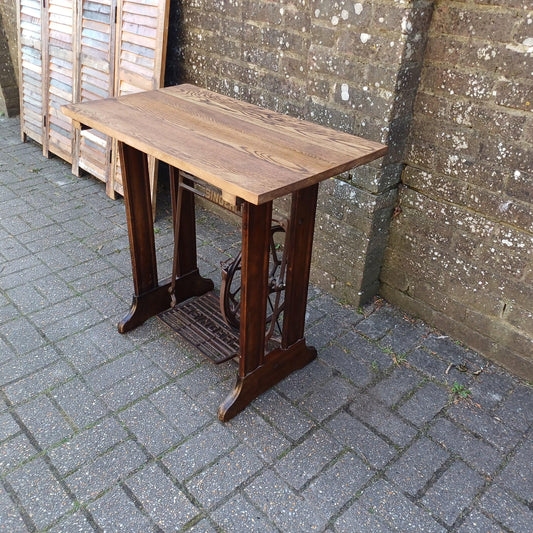 Upcycled Vintage Singer Treadle Sewing Machine Base Table Stripped Repurposed Oak Top Industrial Style FREE HAND Delivery
