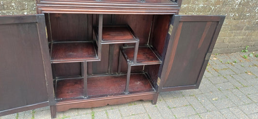 20% OFF AT CHECKOUTRegular price £575.00 GBPRegular priceUnit price / perSale price £575.00 GBP20% OFF AT CHECKOUTVictorian Hardwood Display Cabinet – Ornate Oriental Style Step Shelves & Carved Base, Late 19th Century Zig Zag Shelves FREE HAND Delivery