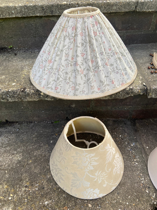 20% OFF AT CHECKOUTRegular price £65.00 GBPRegular priceUnit price / perSale price £65.00 GBP20% OFF AT CHECKOUTSix small medium size vintage shades - incl a pair, jacquard material one, pleated shade with brown beads, vintage lampshades