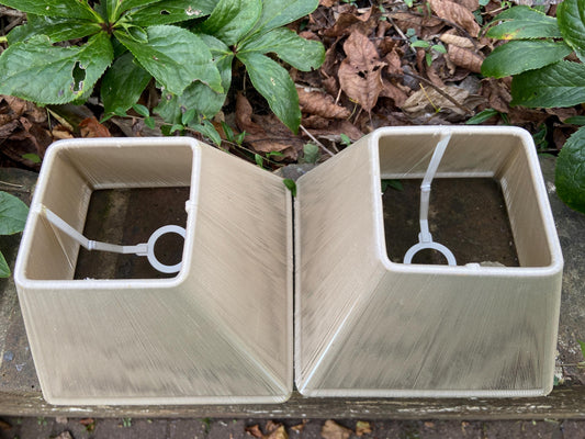 20% OFF AT CHECKOUTRegular price £45.00 GBPRegular priceUnit price / perSale price £45.00 GBP20% OFF AT CHECKOUTPair of vintage string tapered sqaure small lamp shades 20cm sq, 15.5cm tall