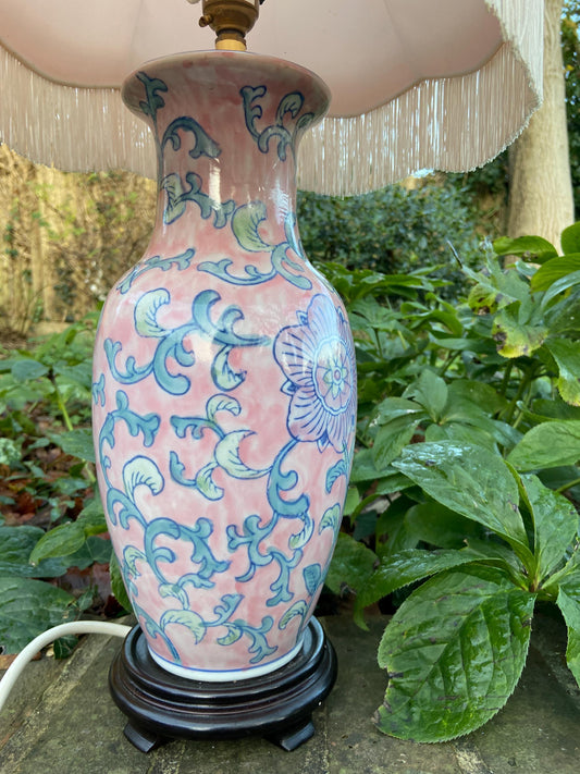 20% OFF AT CHECKOUTRegular price £38.00 GBPRegular priceUnit price / perSale price £38.00 GBP20% OFF AT CHECKOUTLarge pink vintage Oriental Vase style table lamp in pink and blue, with or without quality vintage lamp shade in pink chintz