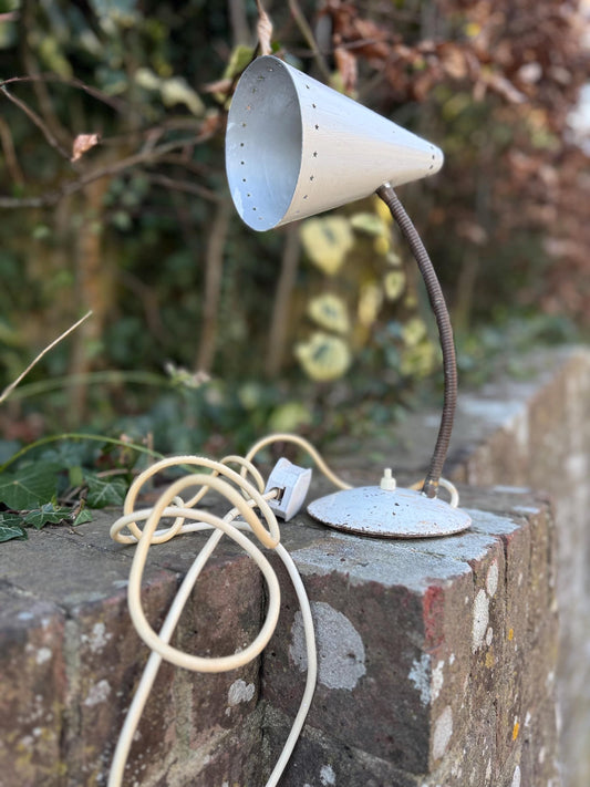 20% OFF AT CHECKOUTRegular price £345.00 GBPRegular priceUnit price / perSale price £345.00 GBP20% OFF AT CHECKOUTOriginal Early Retro Metal Desk Lamp, adjustable, European - white metal with star detail, original finishes, PAT tested and working