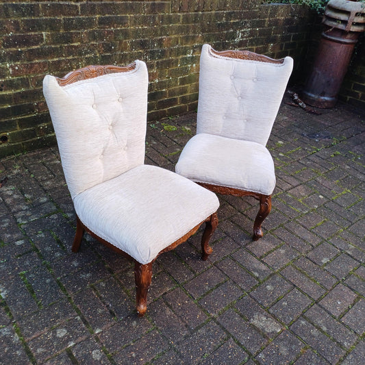20% OFF AT CHECKOUTRegular price £85.00 GBPRegular priceUnit price / perSale price £85.00 GBP20% OFF AT CHECKOUTA Beautiful Pair of Vintage Newly Upholstered Occasional Nursing Chairs Carved Wooden Frames FREE HAND Delivery