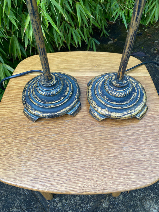 20% OFF AT CHECKOUTRegular price £245.00 GBPRegular priceUnit price / perSale price £245.00 GBP20% OFF AT CHECKOUTVintage pair gold and black metal painted lamps - candlestick tall lamps, ornate table lamps, vintage lamp