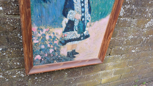 20% OFF AT CHECKOUTRegular price £140.00 GBPRegular priceUnit price / perSale price £140.00 GBP20% OFF AT CHECKOUTWonderful vintage copy of famous Renoir painting of Girl with a Watering Can (1876) oil on card, natural wooden vintage frame.