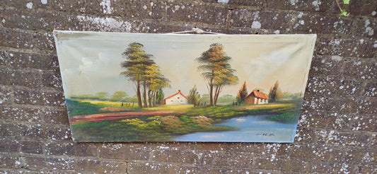 20% OFF AT CHECKOUTRegular price £55.00 GBPRegular priceUnit price / perSale price £55.00 GBP20% OFF AT CHECKOUTOriginal vintage retro large painting - oil and mixed media painting, signed painting in retro frame, children and village scene