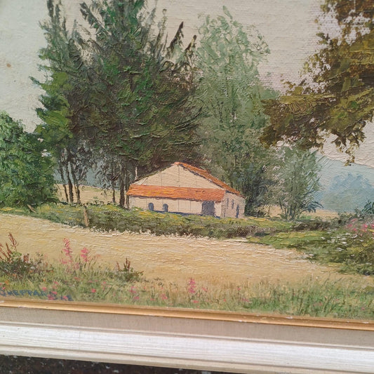 20% OFF AT CHECKOUTRegular price £38.00 GBPRegular priceUnit price / perSale price £38.00 GBP20% OFF AT CHECKOUTOriginal vintage Oil Painting of a Landscape, framed in wonderful retro material mounted vintage frame - large
