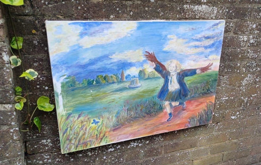 Original Acrylic Painting on Canvas of Joyful Child Running in Nature | Whimsical Icarus-Inspired Art | Impressionist Painting 81 x 59cm