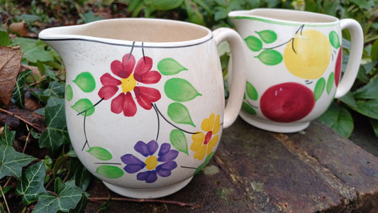 20% OFF AT CHECKOUTRegular price £44.00 GBPRegular priceUnit price / perSale price £44.00 GBP20% OFF AT CHECKOUTMid century vintage matching pottery jugs - handpainted flowers and fruit - glazed, kitchen jugs, vases, 13cm tall