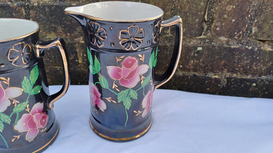 20% OFF AT CHECKOUTRegular price £65.00 GBPRegular priceUnit price / perSale price £65.00 GBP20% OFF AT CHECKOUTRare Set of Vintage Victorian Graduated Jugs Black with Pink Flowers Gold Decoration.