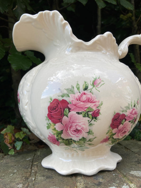 20% OFF AT CHECKOUTRegular price £95.00 GBPRegular priceUnit price / perSale price £95.00 GBP20% OFF AT CHECKOUTSuperb Huge Floral and White Vintage White Ewer Jug From Basin Set Victorian Pink Roses Ceramic Jug 1920’s.